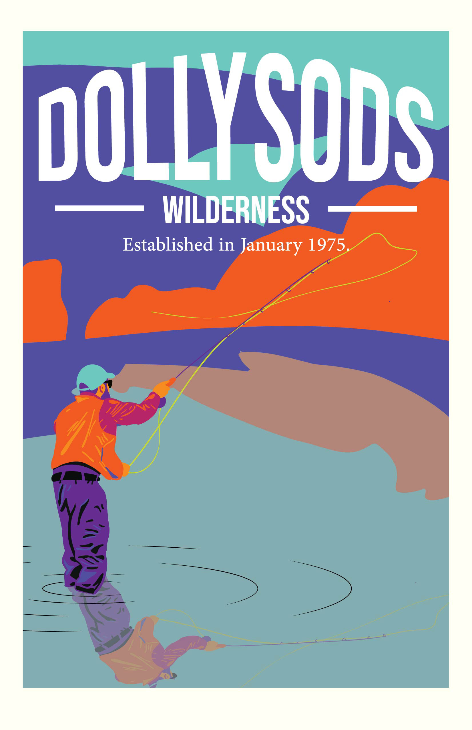 I was instructed to make a Graphic illustration for Dolly Sods National Forest in West Virginia. It depicts an Angler fly fishing in the river, complementing the fall scenery in the background.